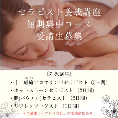 | セラピスト養成講座 短期集中コース受講生 随時募集中 |